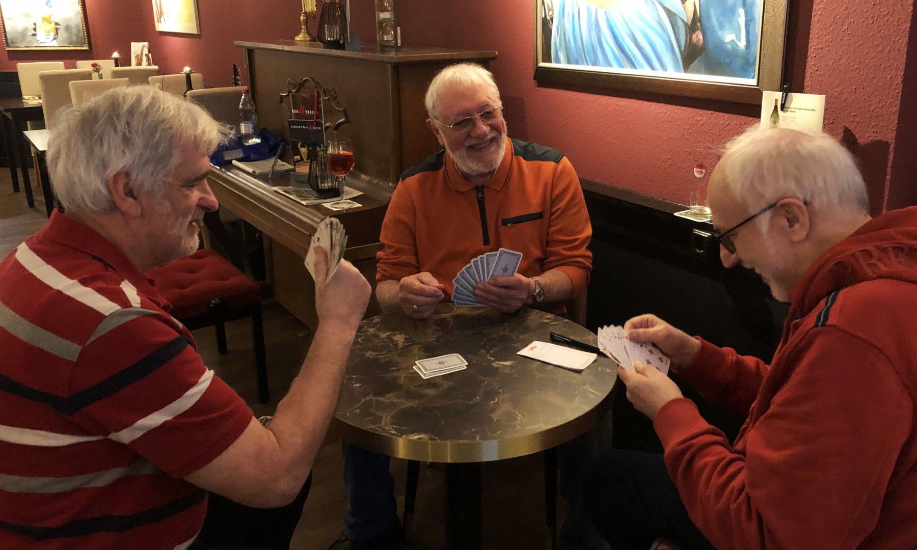 Eine große Anzahl von Spielen steht zur Verfügung. Jede/r Mitspieler/in sucht sich ein Spiel raus und entsprechende Mitspieler aus der Gruppe und los geht es, mit Spiel, Spass und Freude bei einem guten Getränk.