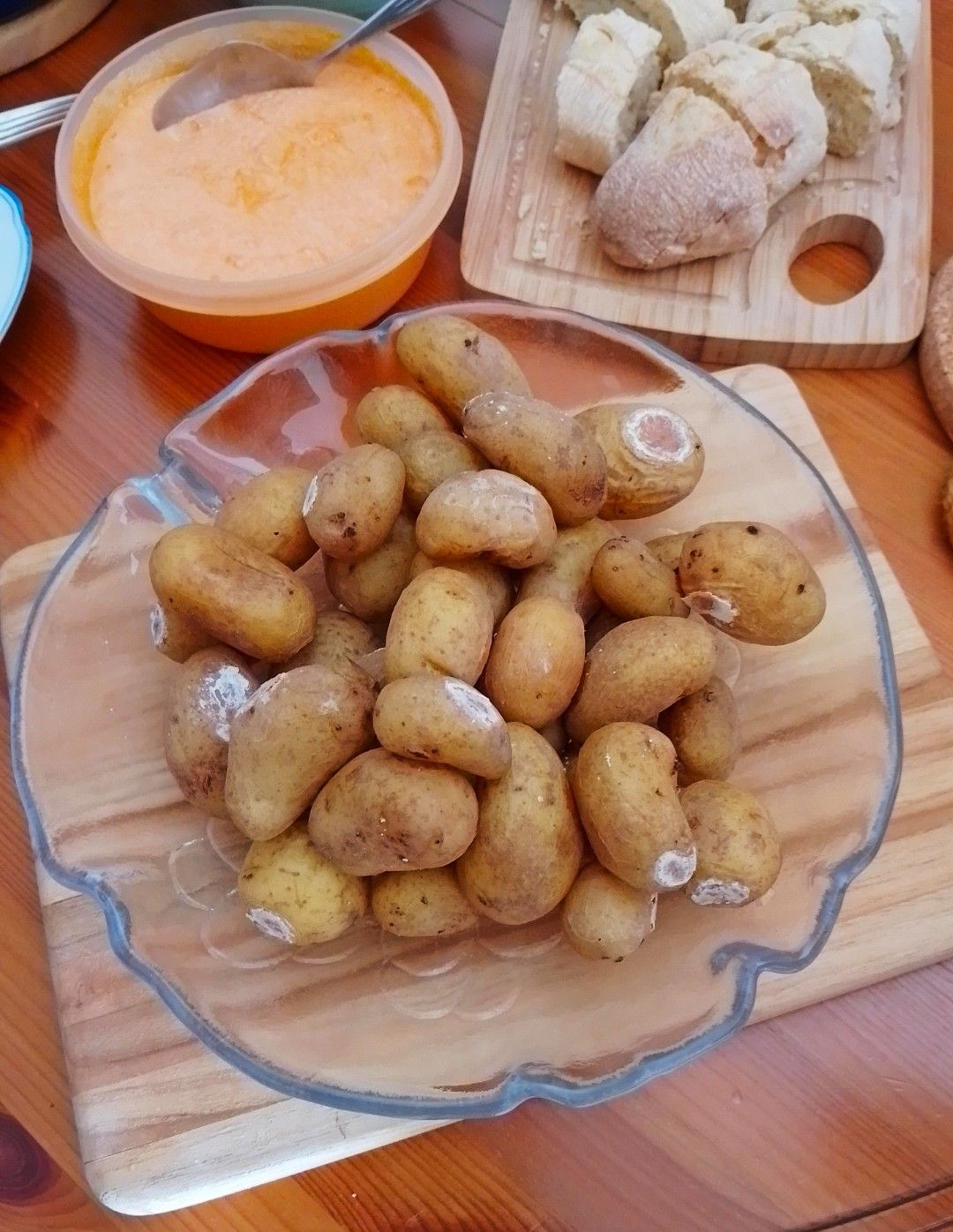 Als Beilage gab es: sommerlichen Kartoffelsalat, Zucchinne-Erbsen-Salat, Auberginen-Dip, selbstgebackenes Fladenbrot. Ein Dessert in Form von 5 verschiedenen Würstchen aus einer Metzgerei gab es nicht, alle waren satt.
