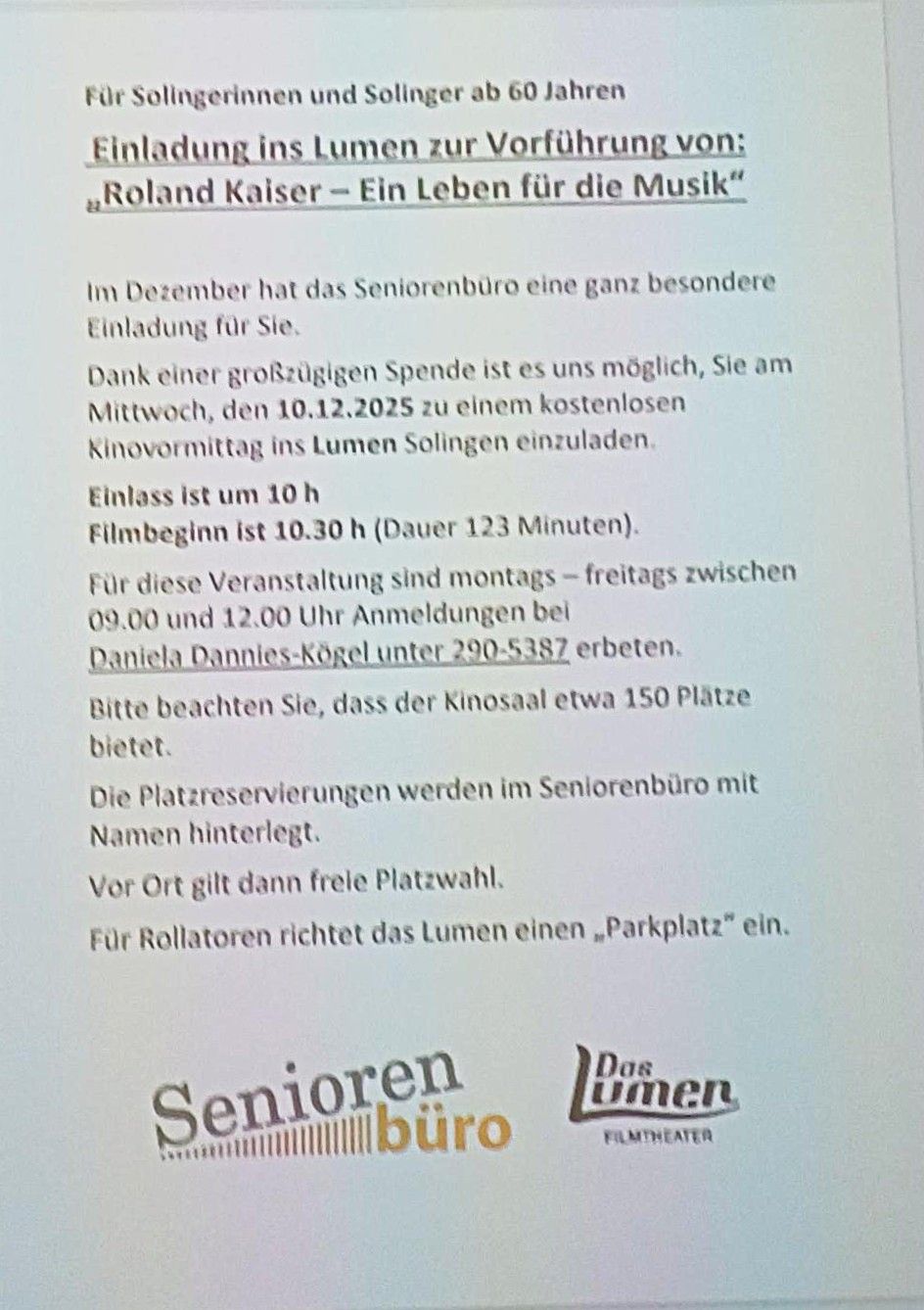 Zur Zeit liegen keine weiteren neuen Informationen vom Seniorenbüro der Stadt Solingen vor.
