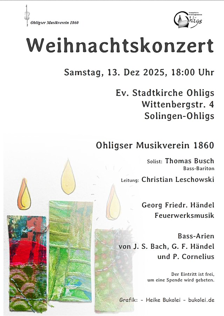 Montag, 15.12.2025, Chorvereinigung Ohligs lädt ein, St. Sebastian, großer Saal, 18:00 h